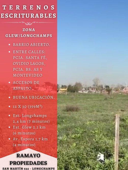 VENTA - RAMAYO PROPIEDADES - Terrenos Escriturables en Glew, Límite con Longchamps